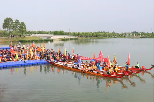 湖北省龍舟公開賽武漢東西湖站在杜工湖收官。近日,“甲辰龍騰 盛世中華”2024年全國龍舟大聯(lián)動活動暨湖北省龍舟公開賽(武漢·東西湖站)在武漢市東西湖區(qū)杜公湖國家濕地公園圓滿收官。本次比賽是本年度湖北省與中國龍舟協(xié)會攜手全國龍舟大聯(lián)動的首場龍舟賽,也是湖北省歷年來舉辦的參賽人數(shù)及隊伍最多、規(guī)格最高、規(guī)模最大的龍舟賽。來自武漢、仙桃、洪湖、黃石、嘉魚等地市,華中科技大學(xué)、湖北經(jīng)濟學(xué)院、武漢商學(xué)院、長江大學(xué)等高校,以及武漢海關(guān)、省知識產(chǎn)權(quán)局、武漢臺協(xié)、武漢市農(nóng)村商業(yè)銀行等省市直機關(guān)的45支代表隊、1000余名運動員在賽場展開激烈爭奪,上演龍舟爭霸盛況。